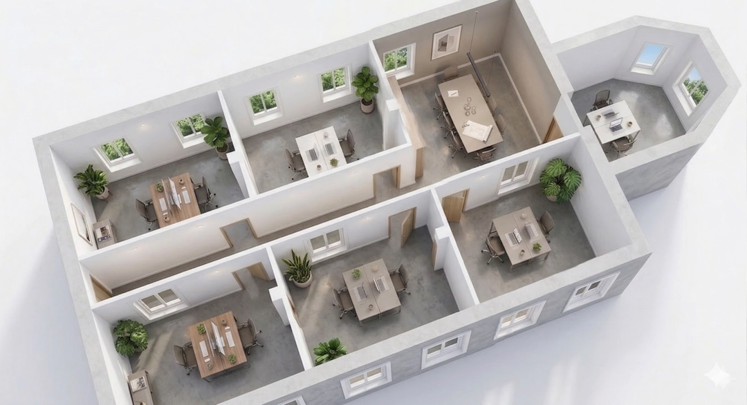 Wir hatten im November letzten Jahres schon einmal auf eine größere Fläche aufmerksam gemacht, die ab Mai 2026 bei uns frei wird. Da solche großen Flächen seltener gefragt sind, besteht jetzt die Möglichkeit einer Teilung und Flächen ab 30qm zu mieten! Diese Größe ist super geeignet für Büro- oder Praxisräume. Sprecht uns einfach an, wenn Ihr Ideen habt.
